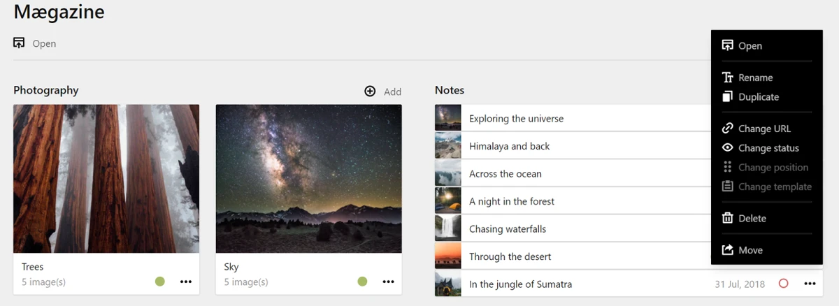Missing move pages feature for Kirby 3. You can move the pages under the parent pages you specify with this plugin.